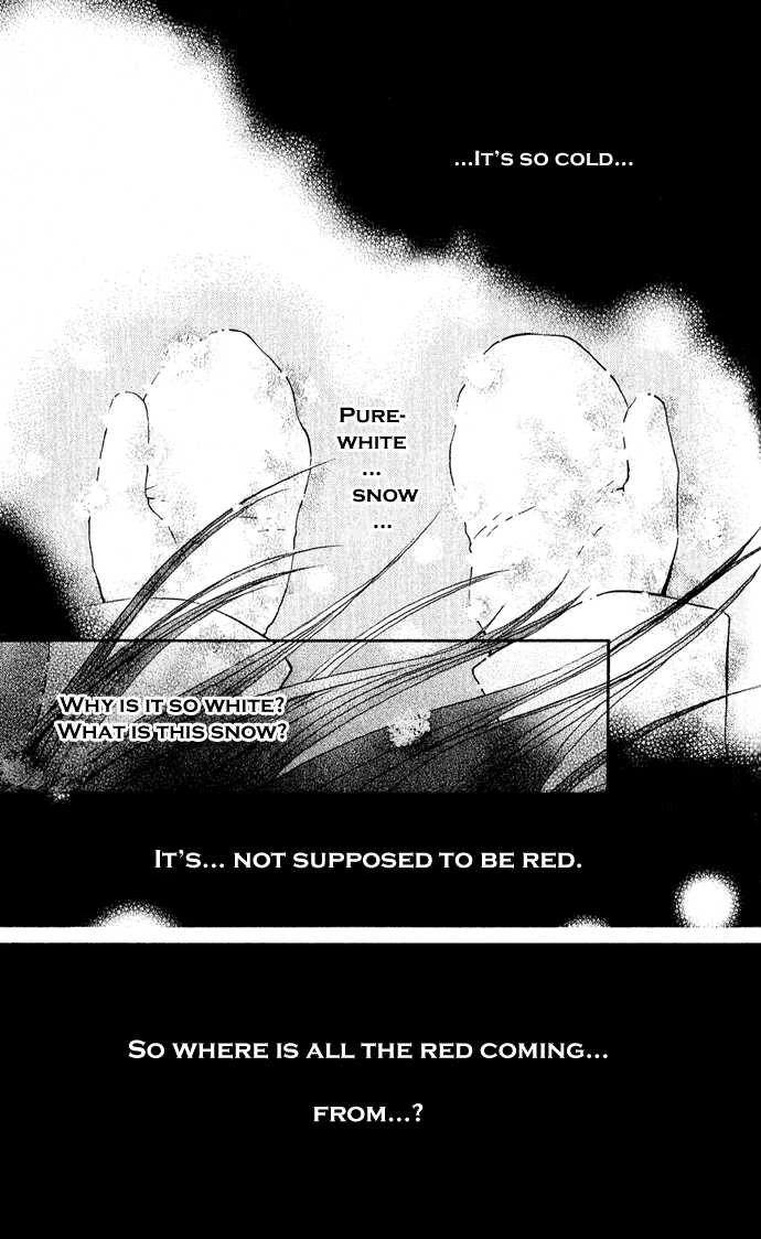 A little girl that was lost in the snow is attacked by a vampire. Another vampire comes and kills the first by piercing his head with his arm. He licks the blood and asks the little girl if she is okay. This is Yuki's first memory from ten years ago. Today, Yuki stands outside the Moon Dormitory at twilight trying to keep a herd of girls back from the building. The gates open and a number of beautiful and attractive individuals exit, the Night Class. The school girls overwhelm and crush Yuki. She is helped up by Kaname Kuran. Yuki jolts to attention, confronted by her crush, also the boy who saved her ten years ago. She thanks him and smiles at her and says that her formal manner towards him makes him feel lonely. Yuki protests its because he saved her life. Kaname tells her not to worry about it and he jostles her hair, but his arm is torn away by an angry Zero Kiryu. He coldly tells Kaname that class has started and Kaname tells him he is scary. A Day Class girl comes up with Kaname and asks him to accept her rose. He accepts the rose and thanks her for it. Zero looks at Yuki sideways and tells her its not his business if she likes Kaname, but she has to understand. Yuki pouts and says she knows that they are different from them, because they are vampires. Yuki and Zero continue their job and Yuki beats up Zero when they are finished, telling him off for being late.