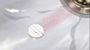 A blood tablet dissolving in a sink.