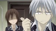 After the events that occurred the night before, Hanabusa receives ten days of suspension, but believes it was worth it to obtain Yuki's irresistible blood. Kaname hearing Hanabusa tell this to Akatsuki, comes over and slaps him and Hanabusa quickly apologizes. Elsewhere Yuki explains that humans should not go near vampires.