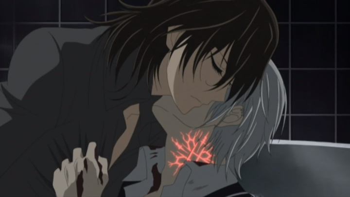 Yuki is continually haunted by visions of blood. Nevertheless, she is determined to find out about her past from Kaname, but he repeatedly evades her question. Zero sees Yuki looking troubled and goes to the Moon Dormitory by himself.[2]