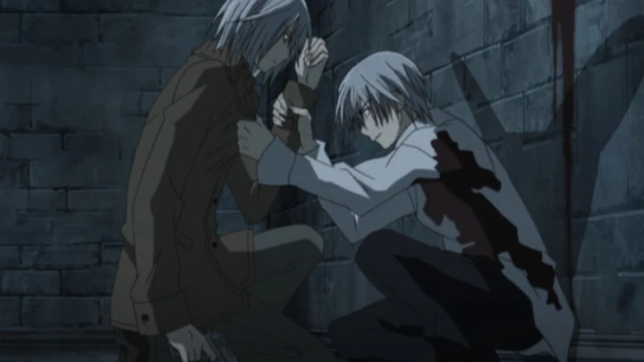 In order to protect the academy, the Headmaster confronts the head of the Hunter Society while Rido is still on the rampage. In the meantime, Ichiru pays a visit to Zero and shoots him with the Bloody Rose gun.[2]